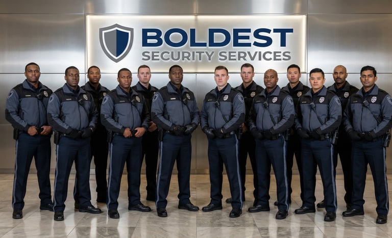 Boldest Security Services is your ultimate destination for top-notch security solution that prioritize safety, professionalism, and performance. At Boldest Security Services, we take pride in our unwavering commitment to safeguarding our clients' assets, properties, and peace of mind. Whether you're looking to enhance the security of your business, event, or personal space, our team of dedicated professionals are here to provide you with reliable and customized security solutions to meet your unique needs.