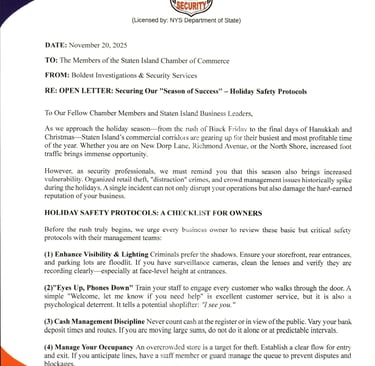 DISCLAIMER Please read this disclaimer ("disclaimer") carefully before using Boldest Investigations & Security Services - (B.I.S.S.) website (“website”, "service") operated by Boldest Investigations & Security Services, LLC ("us", 'we", "our").The content displayed on the website is the intellectual property of the Boldest Investigations, Individual Associations, Organizations and Hosting® Web Service. You may not reuse, republish, or reprint such content without our written consent. All information posted is merely for educational and informational purposes. It is not intended as a substitute for professional advice. Should you decide to act upon any information on this website, you do so at your own risk. While the information on this website has been verified to the best of our abilities, we cannot guarantee that there are no mistakes or errors. We reserve the right to change this policy at any given time, of which you will be promptly updated. If you want to make sure that you are up to date with the latest changes, we advise you to frequently visit this page.